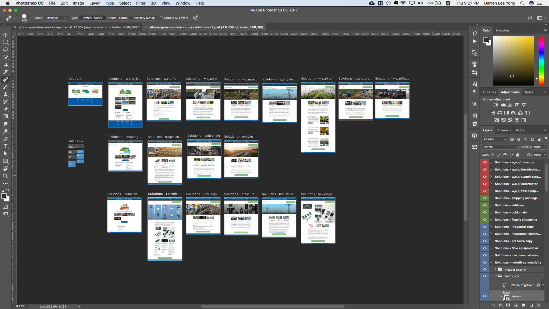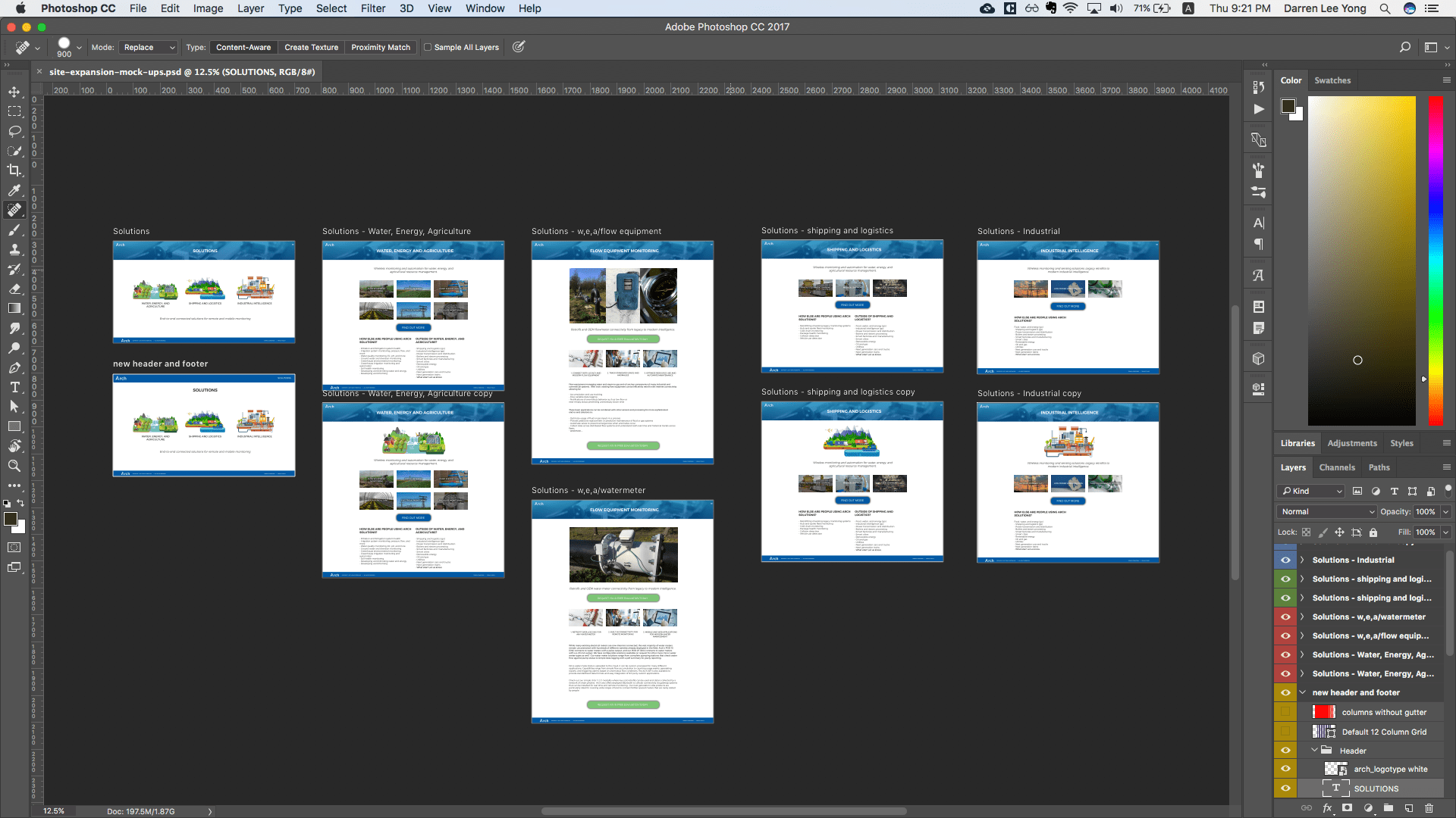Initially, I used Photoshop to design the website for the ’Solutions' pages (before design system was in place). I attempted to implement some sort of consistency and kept the work organized by color-coding the layers and adopting a simple naming convention. Going lean, I did a few high-fidelity mock ups and presented to the business team how these final pages would look like.