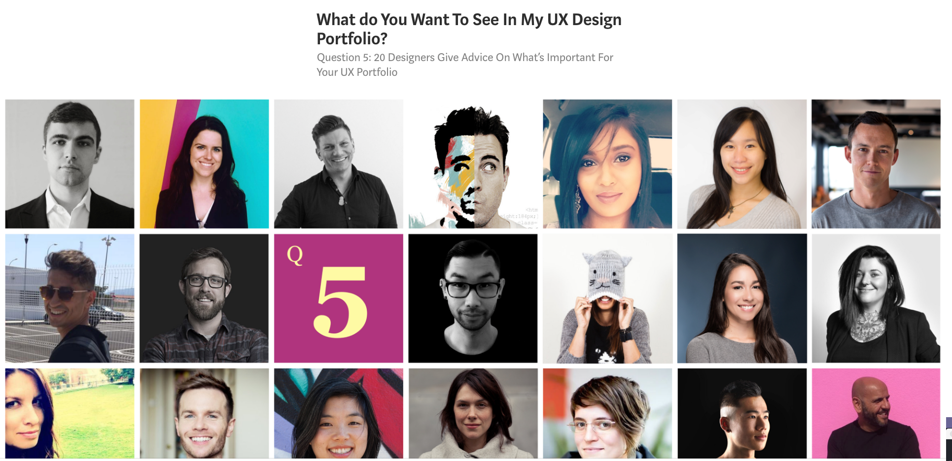 Next was to find out what recruiters look out for in a potential candidate. Fortunately, I stumbled upon an article interviewing 20 experienced designers on what they want to see in a portfolio.