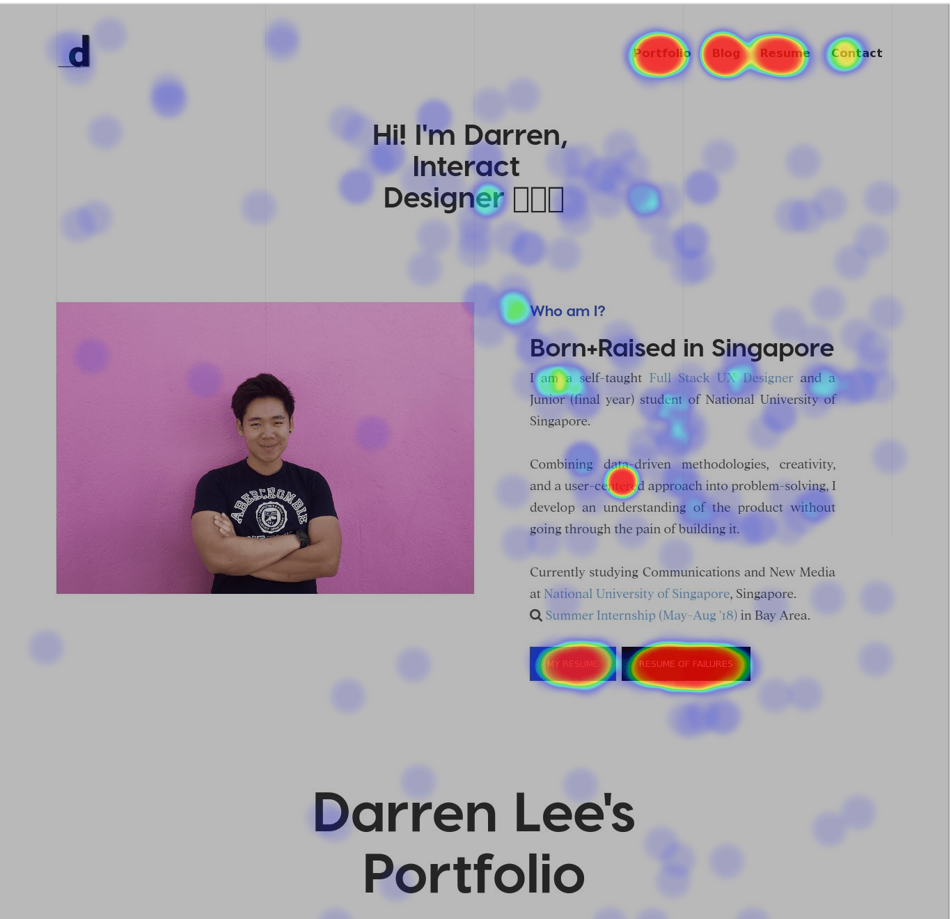 The most hottest area was my resume of failure followed by my resume (animations probably helped in increasing interactions).