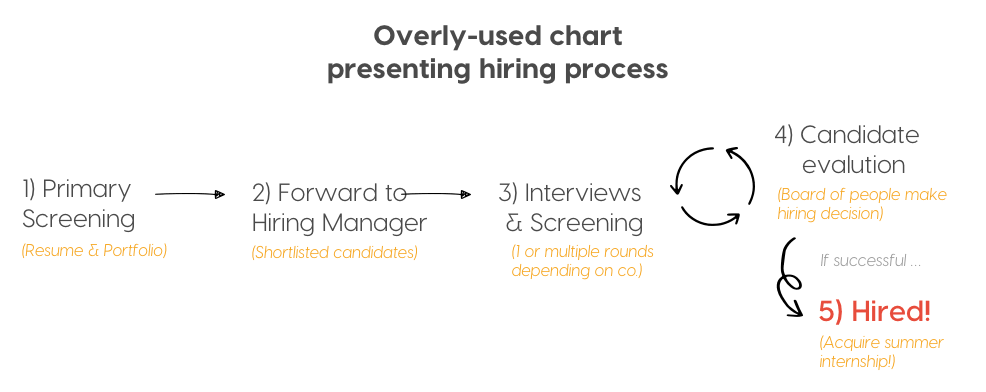 I spent a great deal of time perfecting my resume where I made tons of iterations. I referred to resumes of past interns for inspiration and developed a cleaner look for my own.
