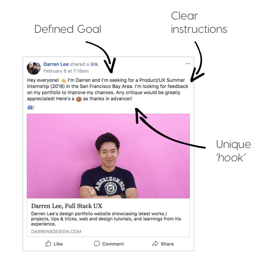 I shared my portfolio to various design communities/channels on Slack including Designers Hangout and UX Design Community. I also shared it to HH Design, a Facebook group with more than ~16,000 members.