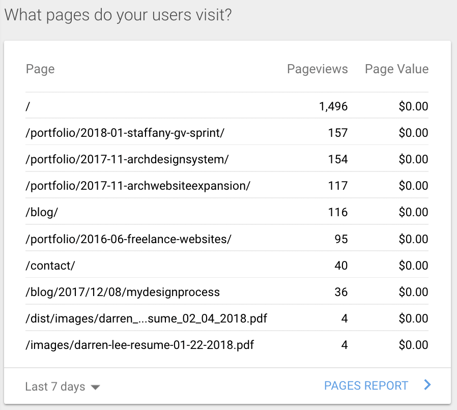 The main page has the most views followed by my piece on 'StaffAny Design Sprint' followed by the 'Arch Design System' pieces were probably the most interesting pieces.